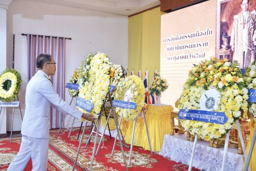 ร่วมกิจกรรมเนื่องในวันนวมินทรมหาราช 13 ตุลาคม 2567 15 ตุลาคม 2567 โดย adminphayamengrai / ข่าวประชาสัมพันธ์,ข่าวกิจกรรม,ข่าวประชาสัมพันธ์,ข่าวประชาสัมพันธ์,ข่าวฝากประชาสัมพันธ์,ข่าวภารกิจผู้บังคับบัญชา,ไม่มีหมวดหมู่ Post Views:จำนวนคนดู 0 วันนี้ 13 ต.ค. 2567 เวลา 07.30 น. พ.ต.อ.สุทีป แสงนัยนา ผกก.สภ.พญาเม็งราย นำข้าราชการตำรวจในสังกัดร่วมกิจกรรมเนื่องในวันนวมินทรมหาราช 13 ตุลาคม 2567 ณ.หอประชุมโรงเรียนพญาเม็งราย โดยมี นายชูสวัสดิ์ สวัสดี นายอำเภอพญาเม็งราย เป็นประธาน