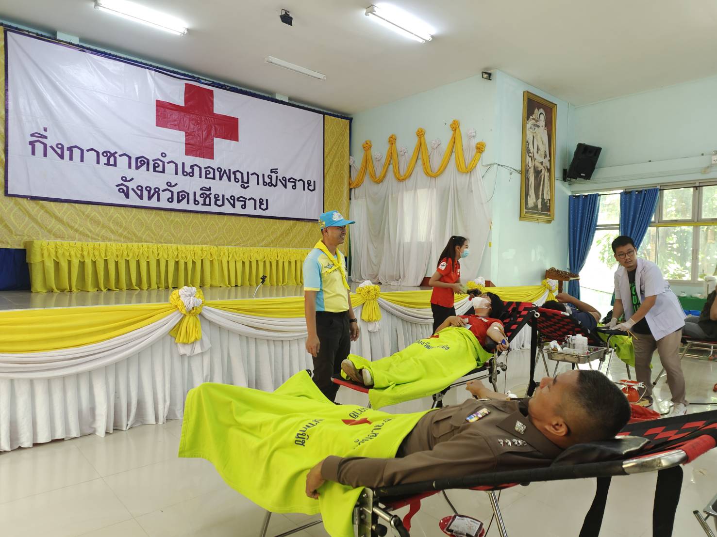 ร่วมกิจกรรมบริจาคเลือด 15 พฤศจิกายน 2566 โดย adminphayamengrai / ข่าวประชาสัมพันธ์,ข่าวกิจกรรม Post Views:จำนวนคนดู 0 วันพุธที่ 15 พฤศจิกายน พ.ศ. 2566 เวลา 08.30-12.00 น. พ.ต.อสุทีป แสงนัยนา ผกก.สภ.พญาเม็งรายและข้าราชการตำรวจ สภ.พญาเม็งราย ร่วมกิจกรรมรับบริจาคโลหิต ดวงตา และอวัยวะ เคลื่อนที่ โดยสำนักงานเหล่ากาชาดจังหวัดเชียงรายและนาย ชูสวัสดิ์ สวัสดี นายอำเภอพญาเม็งรายและนางจารุมาศ สวัสดี นายกกิ่งกาชาดอำเภอพญาเม็งราย ร่วมกับหน่วยงานธนาคารเลือดโรงพยาบาลเชียงรายประชานุเคราะห์ ประจำเดือนพฤศจิกายน 2566 ในการนี้ มีผู้ลงทะเบียนบริจาคโลหิตรวมทั้งสิ้น จำนวน 223 ราย ผู้บริจาคโลหิตไม่ได้ จำนวน 74 ราย ผู้บริจาคโลหิตได้ จำนวน 149 ราย ได้โลหิต 55,850 ซีซี. บริจาคดวงตา จำนวน 17 ราย บริจาคอวัยวะ จำนวน 17 ราย และบริจาคร่างกายให้แก่คณะแพทยศาสตร์ มหาวิทยาลัยเชียงใหม่ จำนวน 17 ราย ณ หอประชุมที่ว่าการอำเภอพญาเม็งราย อำเภอพญาเม็งราย จังหวัดเชียงราย